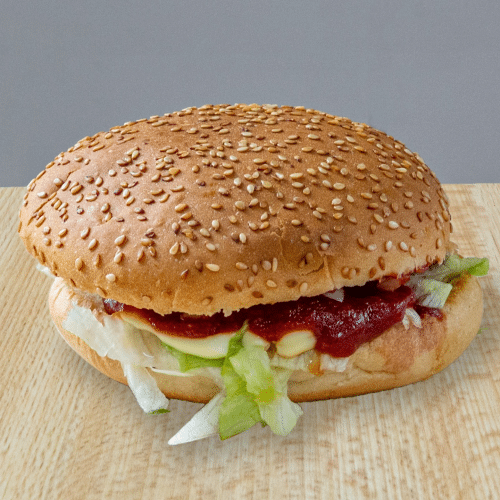 Vegetarische burger met kaas, ei, salade en hamburgersaus